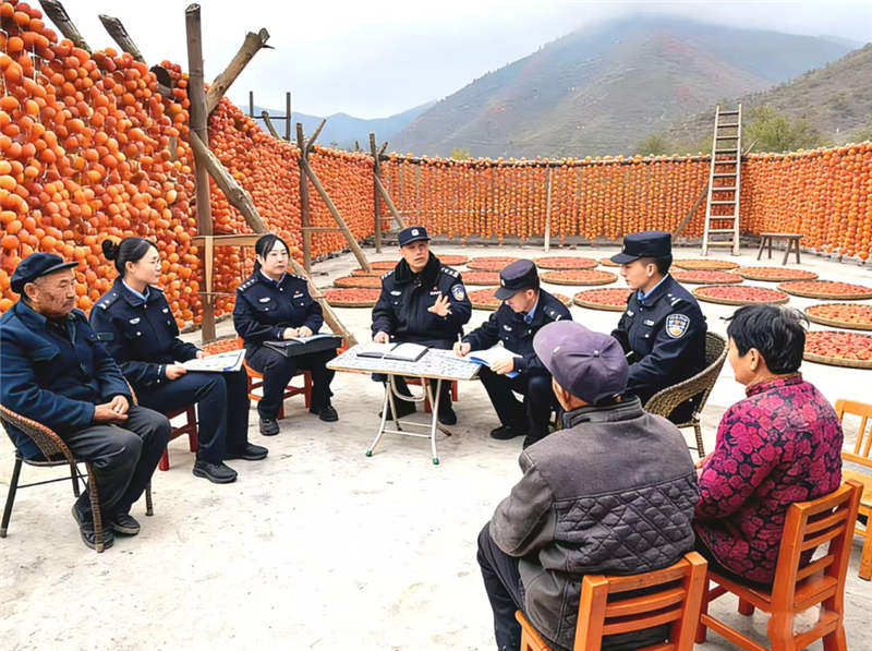 ▲舟曲縣公安局城關派出所民輔警深入轄區(qū)柿子晾曬場和柿子收購點,開展反詐宣傳活動。(朱彤 攝)