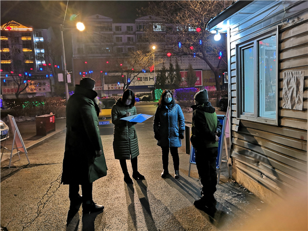 疫情防控期間,吉林省集安市紀委監(jiān)委和巡察辦女同志組成聯(lián)合督查組,夜間深入小區(qū)防控監(jiān)測點,對值班值守、網(wǎng)格化管理等情況開展督導,確保社區(qū)防控責任落實落細。(吉林省集安市紀委監(jiān)委 李承育 攝)