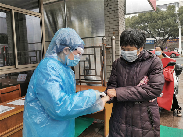 江蘇省常熟市第五人民醫(yī)院監(jiān)察室主任林潔已離開臨床崗位很多年,疫情發(fā)生后她選擇在一線,在發(fā)熱病人預(yù)檢分診處,守好第一道關(guān)口。(江蘇省常熟市紀委監(jiān)委 顧薇 攝)