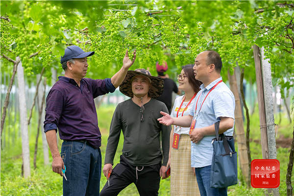 杭州市淳安縣紀(jì)檢監(jiān)察干部在富文鄉(xiāng)走訪葡萄種植戶,了解農(nóng)業(yè)產(chǎn)業(yè)扶持政策兌現(xiàn)情況,幫助解決困難,通過精準(zhǔn)有效監(jiān)督保障各項(xiàng)惠農(nóng)政策落實(shí)。(杭州市淳安縣紀(jì)委監(jiān)委 毛勇鋒 攝)