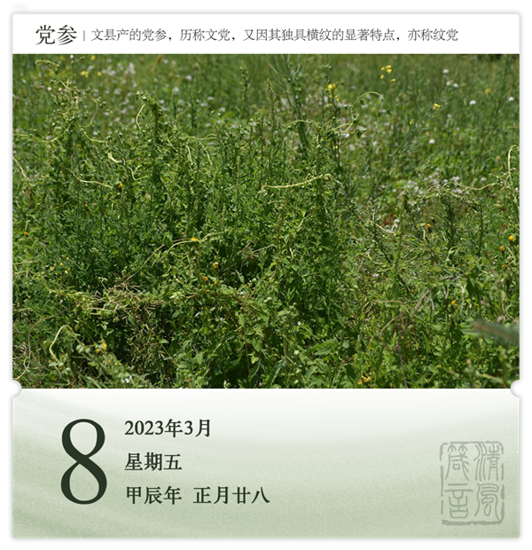 簡(jiǎn)介:黨參,多年生纏繞藤本,我國(guó)有名的藥食兩用植物,具有健脾益肺、養(yǎng)血生津之功效?,F(xiàn)代藥理研究表明,黨參還具有增強(qiáng)機(jī)體免疫力、保護(hù)胃腸道黏膜及抗?jié)儭⒋龠M(jìn)造血機(jī)能、延緩衰老等多種藥理作用。黨參也是保健品,可入膳食,可做茶也可泡酒。花果期7-10月。文縣產(chǎn)的黨參,歷稱(chēng)“文黨”,又因其獨(dú)具橫紋的顯著特點(diǎn),亦稱(chēng)“紋黨”,質(zhì)地優(yōu)良,歷史悠久,生長(zhǎng)特殊,加工考究,入藥精道。其藥用價(jià)值與人參并列,為質(zhì)高的滋補(bǔ)佳品。