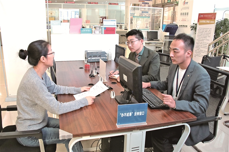 山東省青島市黃島區(qū)紀(jì)委監(jiān)委聚焦漠視群眾合理訴求、推諉扯皮“打太極”、不擔(dān)當(dāng)不作為等不正之風(fēng),“懲治防”一體發(fā)力,堅(jiān)決糾治不擔(dān)當(dāng)不作為問(wèn)題。圖為該區(qū)紀(jì)檢監(jiān)察干部在“辦不成事”反映窗口向群眾了解有關(guān)情況。杜翔宇 攝