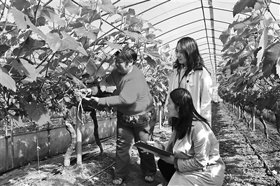 江蘇省東臺市紀委監(jiān)委開展護航農(nóng)村特色產(chǎn)業(yè)發(fā)展專項監(jiān)督,深入查糾鄉(xiāng)村振興項目資金監(jiān)管和涉農(nóng)補貼發(fā)放等方面存在的問題。圖為該市紀委監(jiān)委工作人員在葡萄種植大棚走訪了解相關(guān)情況。王茜 攝