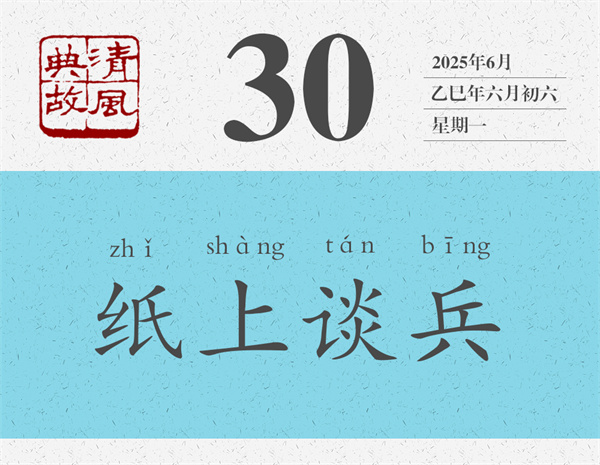 這就是歷史上著名的長平之戰(zhàn)。后人即根據趙括只會照搬兵書而不知變通之事,引申出“紙上談兵”之典,比喻只會紙上空談,而不能解決實際問題,或者只會空發(fā)議論,而得不到真正落實。清人張問陶詩《即事》:“紙上談兵壁上觀,立言先慮立功難。”