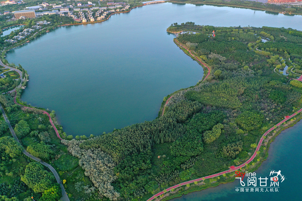 近日,夕陽下的甘肅省張掖市蘆水灣生態(tài)景區(qū)湖水湛藍(lán),草木翠綠,景色宜人。蘆水灣生態(tài)景區(qū)位于張掖濱河新區(qū),占地4500畝,其中水域面積2260畝,綠化林地1790畝,2018年評(píng)為國家4A級(jí)景區(qū),被譽(yù)為張掖城市的“后花園”和“加濕器”。