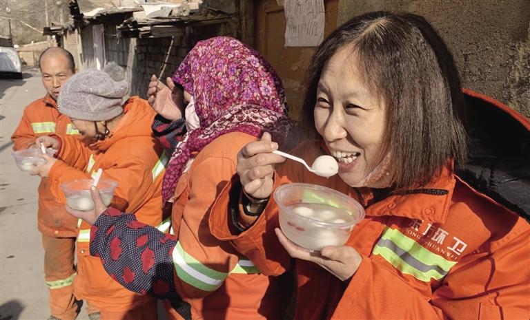 活動中,志愿者們還搭鍋煮湯圓。現(xiàn)場兌獎的居民和駐守干部、社區(qū)網(wǎng)格員、老黨員們共同品嘗著美味的湯圓,在寒冷的天氣里,讓大家暖身更暖心。