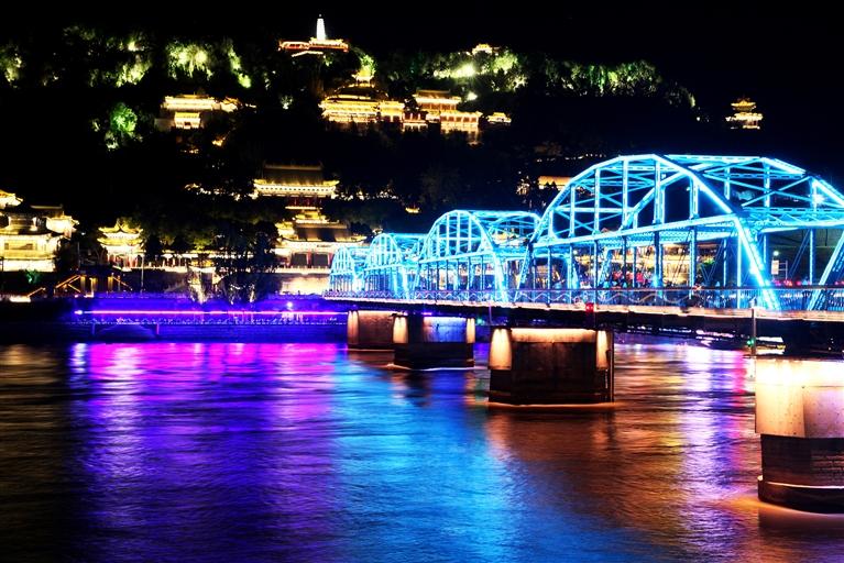 中國甘肅網(wǎng)5月24日訊 據(jù)蘭州日報報道記者 張建平 攝)為迎接甘肅省第十四次黨代會勝利召開,我市在標志性橋梁、廣場及樓體精心組織以“蘭州藍”為主題的燈光秀,營造濃厚的喜慶氛圍。中山橋、黃河樓等處燈光展示“蘭州藍”,這顯示了全市上下守護碧水藍天的信心,更昭示著全市黨員干部堅定垂范清廉蘭州,共建政治生態(tài)“蘭州藍”的決心。