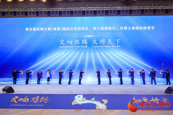第五屆絲綢之路(敦煌)國際文化博覽會和第十屆敦煌行·絲綢之路國際旅游節(jié)于2021年9月24日—26日在甘肅省敦煌市隆重舉行。中共中央政治局委員、中央書記處書記、中宣部部長黃坤明以視頻形式出席開幕式暨高峰會議并發(fā)表主旨演講,300多名國外、國際組織及國內省區(qū)市代表現(xiàn)場參加會議,400多萬網(wǎng)友線上參加有關活動。大會以習近平新時代中國特色社會主義思想為指導,認真落實“一帶一路”倡議,以線上線下相結合的方式舉辦一系列主體活動,有力促進絲路沿線各國文化交流與旅游合作,有效增進文化認同與情感共鳴,是一次展示中國文化自信、共商“一帶一路”建設、推動文旅融合發(fā)展的盛會,是一次提升甘肅對外影響力、展示開放新形象、凝聚發(fā)展新動力的盛會,得到了國際社會的廣泛贊譽和一致好評。