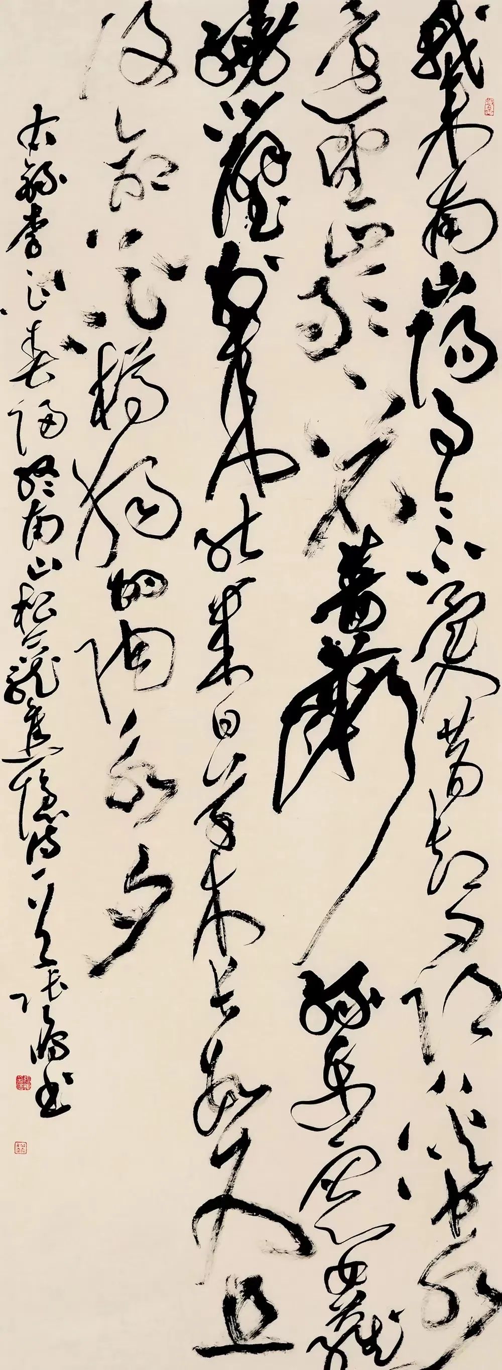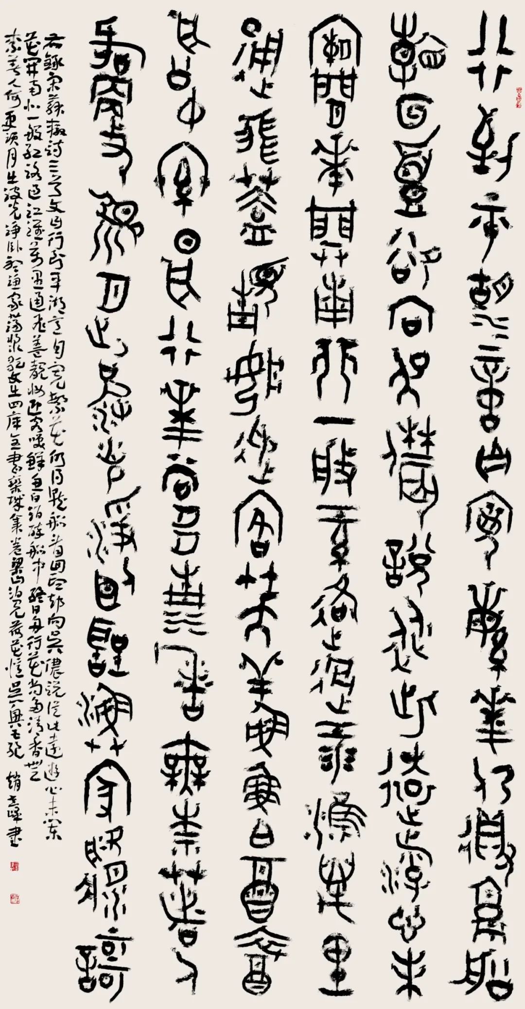 此次展覽展出的184件八尺大幅書(shū)法作品,主題鮮明,諸體兼?zhèn)洹N弩w占比平衡,一改過(guò)去篆書(shū)篆刻作品少、好作品更少的局面。書(shū)法家區(qū)別于他人的不同之處,在于書(shū)法家是用點(diǎn)畫(huà)結(jié)體和章法中的各種對(duì)比關(guān)系和形勢(shì)變化來(lái)觀察世界、認(rèn)識(shí)世界和表現(xiàn)世界的,倡導(dǎo)注重日常書(shū)寫(xiě),將書(shū)法創(chuàng)作變成日常的書(shū)寫(xiě)活動(dòng),變成生活的一部分,不為創(chuàng)作而創(chuàng)作。入選的作者以70后、80后、90后為主體,展現(xiàn)出甘肅書(shū)法的源遠(yuǎn)流長(zhǎng)、青藍(lán)相繼、賡續(xù)文脈。