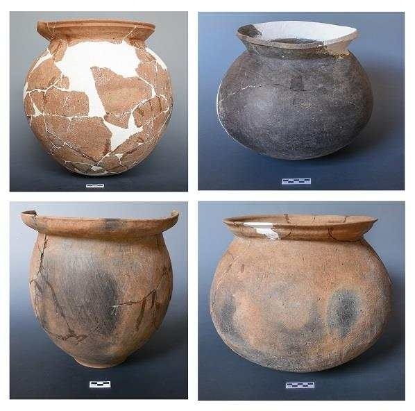 四臺(tái)遺址面積約15萬平方米,考古發(fā)現(xiàn)房址40余座,出土了陶、石、骨、貝類遺物800余件,可以區(qū)分為年代不同的五組文化遺存,其中,第一、二組遺存處于舊石器時(shí)代向新石器時(shí)代過渡階段。第一組文化遺存年代距今10400至10000年,發(fā)現(xiàn)6座近方形半地穴房址,出土打制石器、細(xì)石器、磨制石器、骨角器以及動(dòng)物骨骼等,陶器有筒形罐、板狀器等,器表戳印圓圈紋或壓印折線紋、網(wǎng)格紋。第二組文化遺存年代距今9200至9000年,發(fā)現(xiàn)4座近方形半地穴房址,出土陶板狀器、石研磨器以及較多骨針、骨錐等,呈現(xiàn)出與第一組連續(xù)發(fā)展的特征。