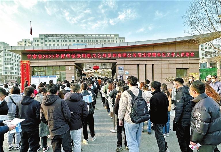 2月25日至26日,甘肅省2023年度考試錄用公務(wù)員筆試在13個市州同時進行。今年全省共設(shè)置111個考點、4363個考場,13萬名考生報名參加考試,計劃招錄4249人,比2022年招錄2364名增加79.7%,招錄總?cè)藬?shù)創(chuàng)歷史新高。