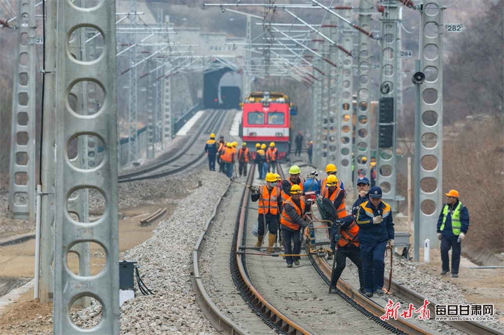近日,在隴海鐵路區(qū)間,蘭州鐵路局工務(wù)機(jī)械段700名干部職工奔赴各施工區(qū)段,在不影響線路運(yùn)行的情況下,抓緊時(shí)間對(duì)線路進(jìn)行換軌施工。本次施工預(yù)計(jì)3月底完工。