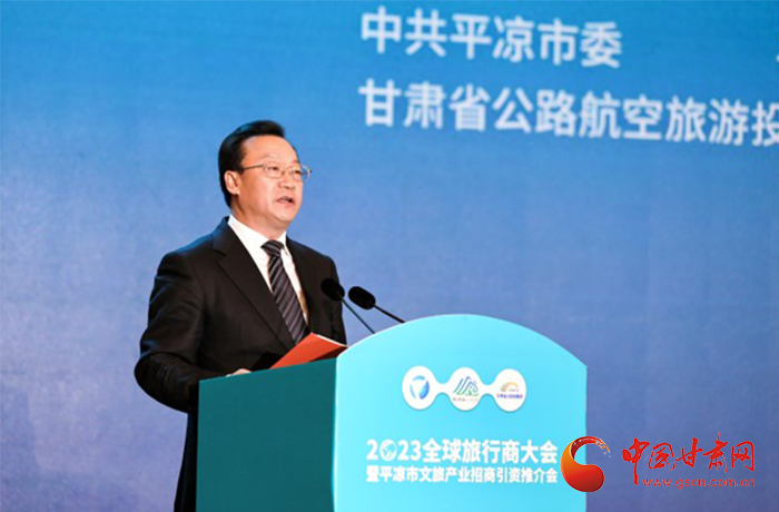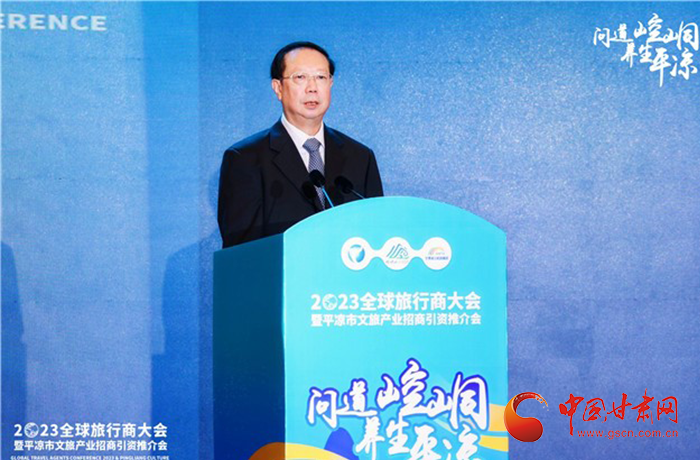 何效祖在致辭中說,平?jīng)鍪歉拭C向東開放的“門戶”城市,是風(fēng)景宜人的旅游城市,是甘肅布局的文旅康養(yǎng)基地和支撐“一核三帶”區(qū)域發(fā)展格局中的重要支點(diǎn),擁有崆峒山、大云寺·王母宮、瑤池溫泉等眾多聞名遐邇的人文和自然景觀。今天,我們與平?jīng)鍪形姓⒅袊?guó)旅行社協(xié)會(huì)、甘肅公航旅集團(tuán)一道搭建平臺(tái),誠(chéng)邀各位嘉賓走進(jìn)甘肅、深入平?jīng)?,組織開展宣傳推介、洽談合作、展示展銷、考察踩線等系列活動(dòng),就是要引導(dǎo)大家深度感知甘肅高質(zhì)量發(fā)展的強(qiáng)烈愿望,實(shí)地觸摸甘肅文旅如火如荼的生動(dòng)實(shí)踐,誠(chéng)懇表達(dá)隴原兒女“視企業(yè)家為最寶貴財(cái)富”的真誠(chéng)合作和赤誠(chéng)服務(wù)之心。我們衷心希望,廣大中外旅行商和文旅專家、文旅企業(yè)家以本次大會(huì)為契機(jī),加強(qiáng)交流互鑒,深化務(wù)實(shí)合作,加大在甘投資力度,組織更多游客到甘肅觀光旅游,帶動(dòng)更多優(yōu)質(zhì)文旅企業(yè)和項(xiàng)目落戶甘肅,合力譜寫甘肅文旅高質(zhì)量發(fā)展的嶄新篇章!