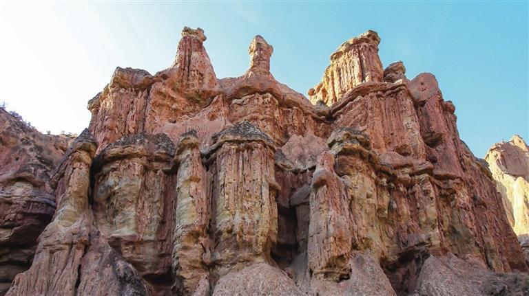 張掖土林地貌主要集中在該市肅南縣境內(nèi),平均海拔高度1700米左右,面積約20平方公里。土林發(fā)育齊全、類型多樣,從幼年時(shí)期的細(xì)溝土牙,到中青年期的圓盆土柱,直至成熟期的坡地殘柱,均有呈現(xiàn),完整地展示了土林地貌的形成與演化過程。