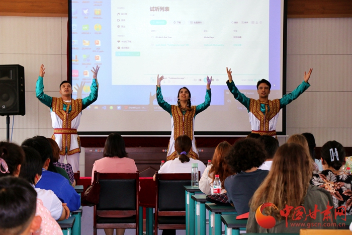 活動(dòng)中,蘭州交通大學(xué)附屬中學(xué)組織七、八年級(jí)用英語表演了詩歌朗誦、話劇、合唱、獨(dú)唱等節(jié)目,來華留學(xué)生代表獻(xiàn)上了土庫曼斯坦傳統(tǒng)舞蹈表演,現(xiàn)場(chǎng)氣氛熱烈。