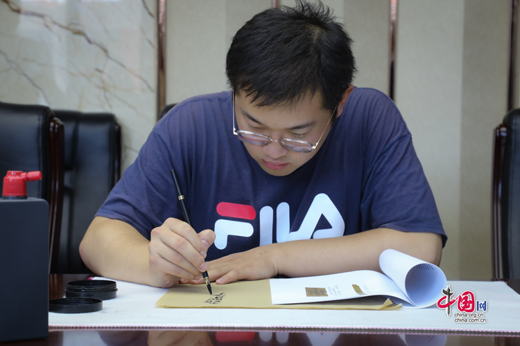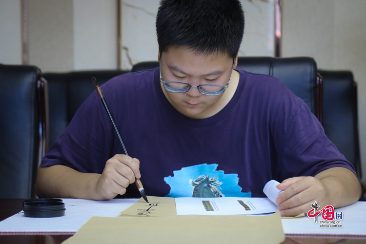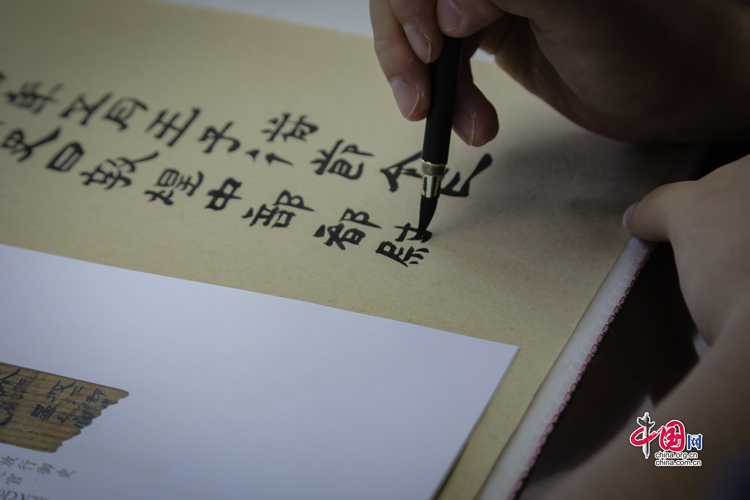 7月31日,蘭州大學(xué)古文字學(xué)強(qiáng)基計劃同學(xué)正在臨摹簡牘。中國網(wǎng)記者 鄭偉 攝