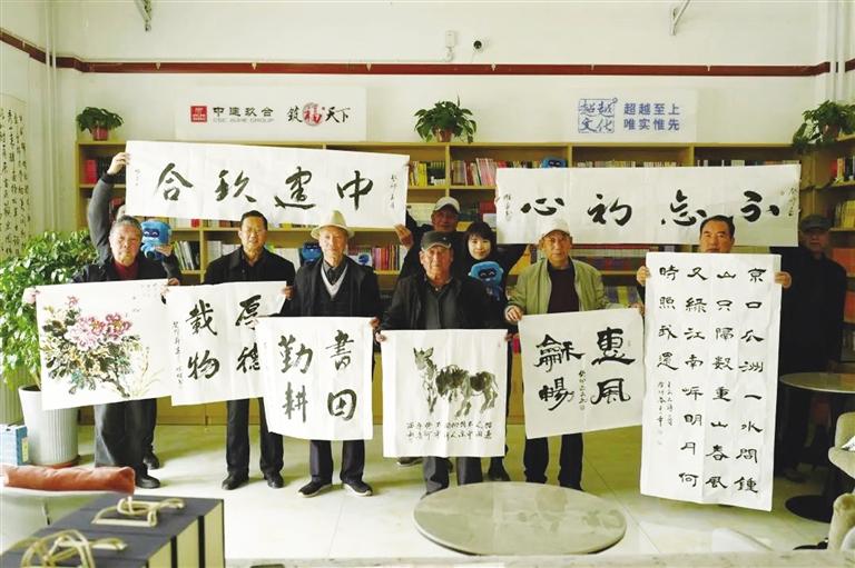 “家門口就有書屋,環(huán)境特別好,大人小孩都愛去。”康樂縣群眾對胭脂湖公園內(nèi)的中建玖合書屋豎起大拇指。走進書屋,濃濃書香撲面而來,仿古磚、木質(zhì)書架等古香古色的室內(nèi)布置與當?shù)厝罕妱?chuàng)作的書畫作品渾然一體,彰顯雅致。