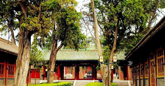 由于山區(qū)祭祀不便,明成化十九年,地方官員向明朝廷申請(qǐng)?jiān)谇刂輰?zhuān)立伏羲廟,于是伏羲祭祀中心從卦臺(tái)山移至天水西關(guān)伏羲廟。伏羲廟有確切記載的年代是元代的三皇廟。三皇廟時(shí),規(guī)模較小,沒(méi)有塑像,伏羲廟也正是在三皇廟的基礎(chǔ)上創(chuàng)建而成。根據(jù)史料,宋、金、元對(duì)三皇陵寢祭祀相當(dāng)重視。廟里多株七八百年,乃至上千年的古樹(shù)也是那時(shí)所植,這些有靈性的古老的生命,見(jiàn)證了無(wú)數(shù)久遠(yuǎn)而輝煌的歷史。