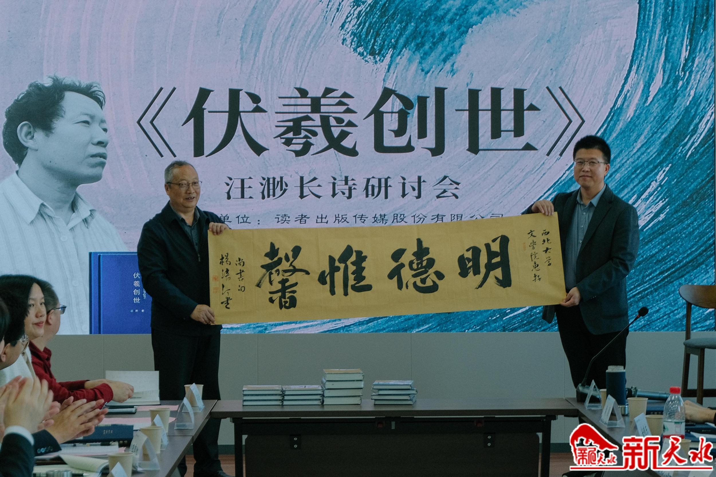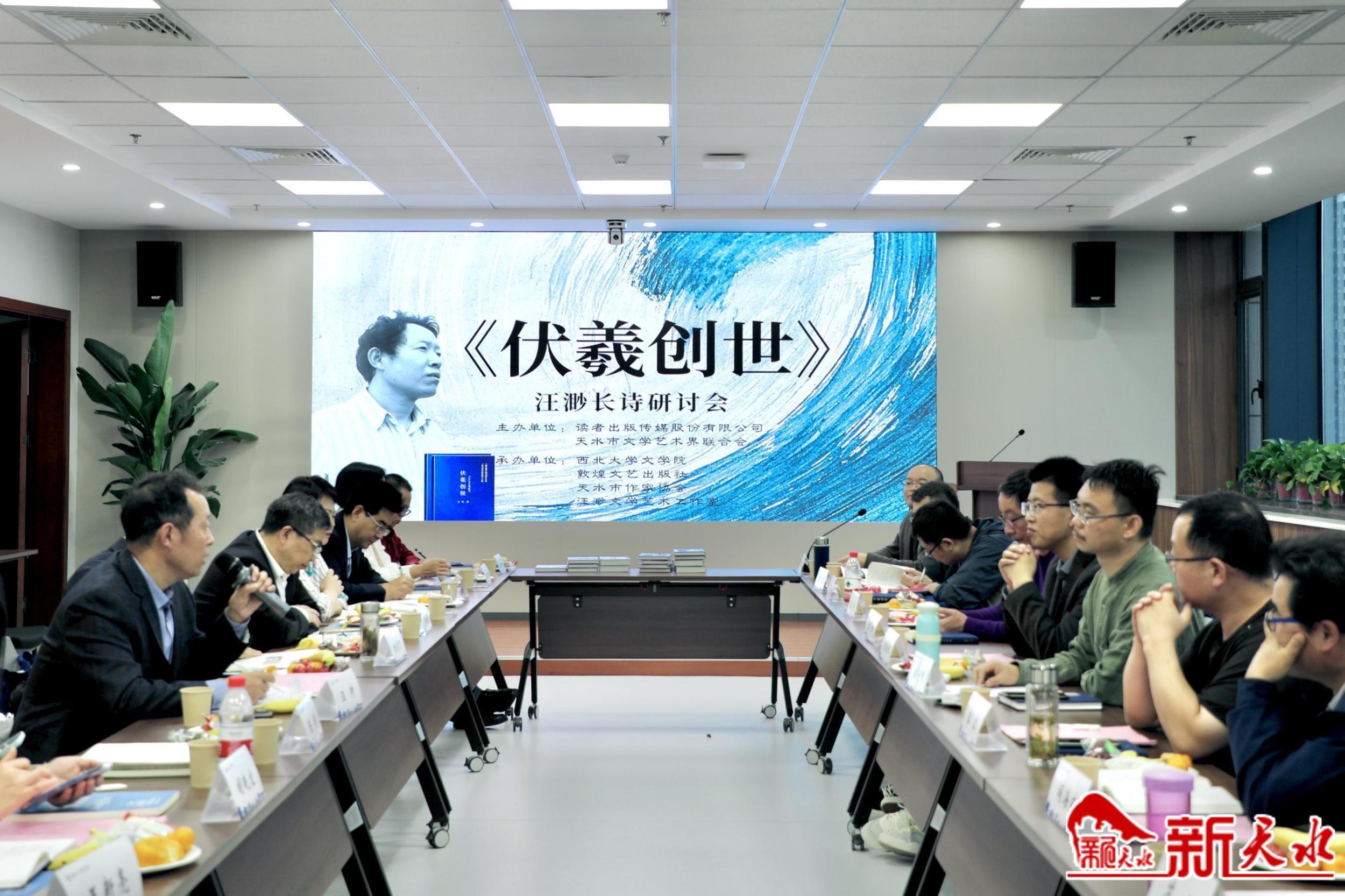 新天水訊【記者楊華 陳光毅】10月14日,天水詩(shī)人汪渺長(zhǎng)詩(shī)《伏羲創(chuàng)世》研討會(huì)在西北大學(xué)文學(xué)院舉辦。本次研討會(huì)由讀者出版?zhèn)髅焦煞萦邢薰?、天水市文?lián)主辦,西北大學(xué)文學(xué)院、敦煌文藝出版社、天水市作協(xié)、汪渺文學(xué)藝術(shù)工作室承辦。