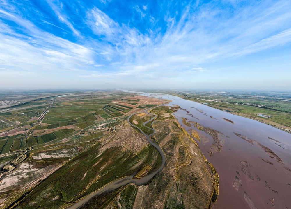 黃河從內(nèi)蒙古巴彥淖爾市臨河區(qū)雙河鎮(zhèn)流過(無人機照片,2023年9月15日攝)。新華社記者 邢廣利 攝