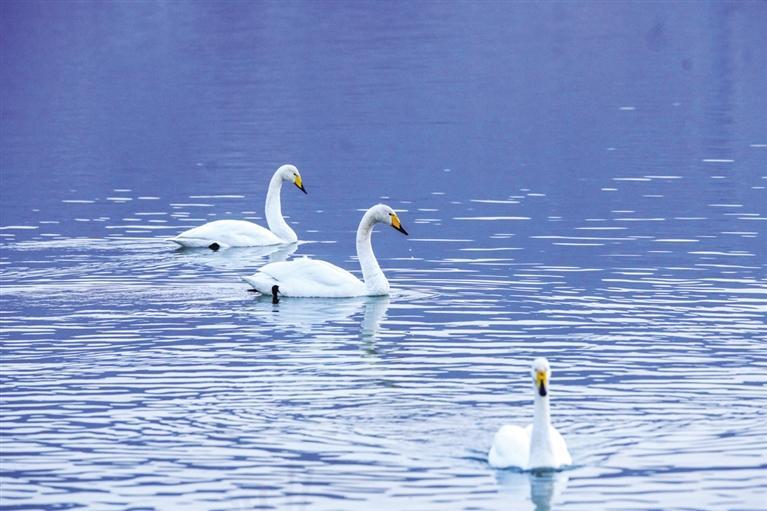 “生態(tài)好不好,鳥(niǎo)兒是晴雨表。”近日,西固區(qū)達(dá)川鎮(zhèn)三河口迎來(lái)了今年首批越冬大天鵝,吸引了眾多市民游客前往觀賞。記者從蘭州市林業(yè)局了解到,目前黃河蘭州段濕地分布和棲息的濕地鳥(niǎo)類約有68種,其中,國(guó)家I級(jí)重點(diǎn)保護(hù)鳥(niǎo)類3種(黑嘴鷗、黑鸛、白尾海雕),國(guó)家II級(jí)保護(hù)鳥(niǎo)類5種(大天鵝、鴛鴦、鹮嘴鷸、白腰杓鷸、鶚)。鵲鴨、綠頭鴨、斑嘴鴨、普通秋沙鴨和漁鷗等優(yōu)勢(shì)越冬水鳥(niǎo)種群數(shù)量較大,主要棲息地分布在沿線各灘涂地,棲息地質(zhì)量較高。