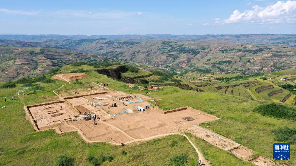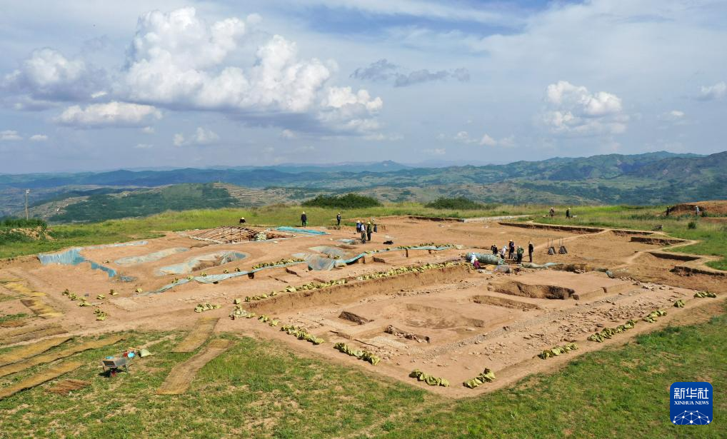 這是2022年6月10日拍攝的甘肅省隴南市禮縣四角坪遺址考古發(fā)掘現(xiàn)場(無人機(jī)照片)。新華社記者 陳斌 攝
