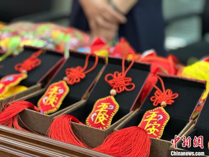 5月7日,“甘肅省2024年‘文化和自然遺產(chǎn)日’非遺宣傳展示展銷主會場系列活動暨第十九屆慶陽香包民俗文化節(jié)”新聞發(fā)布會舉行。圖為發(fā)布會現(xiàn)場展示的香包制品。楊娜 攝