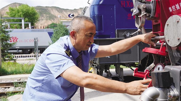 中國甘肅網(wǎng)7月9日訊 據(jù)蘭州晚報報道(記者 譚安麗 文/圖 通訊員 趙童)仲夏時節(jié),陽光明媚,沐浴著大西北的陽光,一列飛馳的鋼鐵巨龍在隴海線群山中穿行。駕駛室內(nèi),56歲的司機(jī)劉曉明手握閘把、眼睛緊緊注視前方,操縱著機(jī)車穿山越谷,快速馳騁。