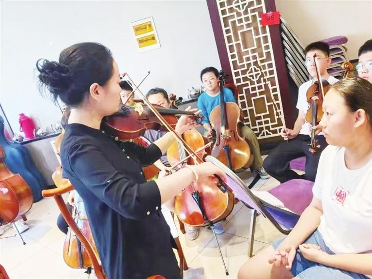 中國甘肅網8月26日訊 據(蘭州晨報報道 奔流新聞·蘭州晨報記者 裴強)近日,教育部白名單競賽“2023-2024學年全國青少年音樂素養(yǎng)大賽”全國總決賽在山東省濟南市閉幕。蘭州市少年宮交響樂團弦樂分團的20名學員經過初賽、復賽層層選拔,以省賽一等獎佳績代表蘭州市參加“2023-2024學年全國青少年音樂素養(yǎng)大賽”決賽,最終斬獲演奏類西洋樂團合奏賽項中學組三等獎。圖為學員們在排練