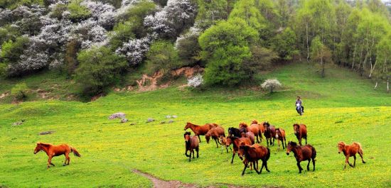 關(guān)山在很長(zhǎng)一段時(shí)間一直是中國(guó)重要的牧馬之地。據(jù)史書記載,大將衛(wèi)青、霍去病北征匈奴,曾從關(guān)山征集戰(zhàn)馬14萬匹,足見當(dāng)時(shí)這里牧馬業(yè)的繁盛。然而現(xiàn)在,馬的蹤跡只是景區(qū)的點(diǎn)綴,要想看到萬馬奔騰的場(chǎng)面,要去河西走廊的山丹軍馬場(chǎng)。