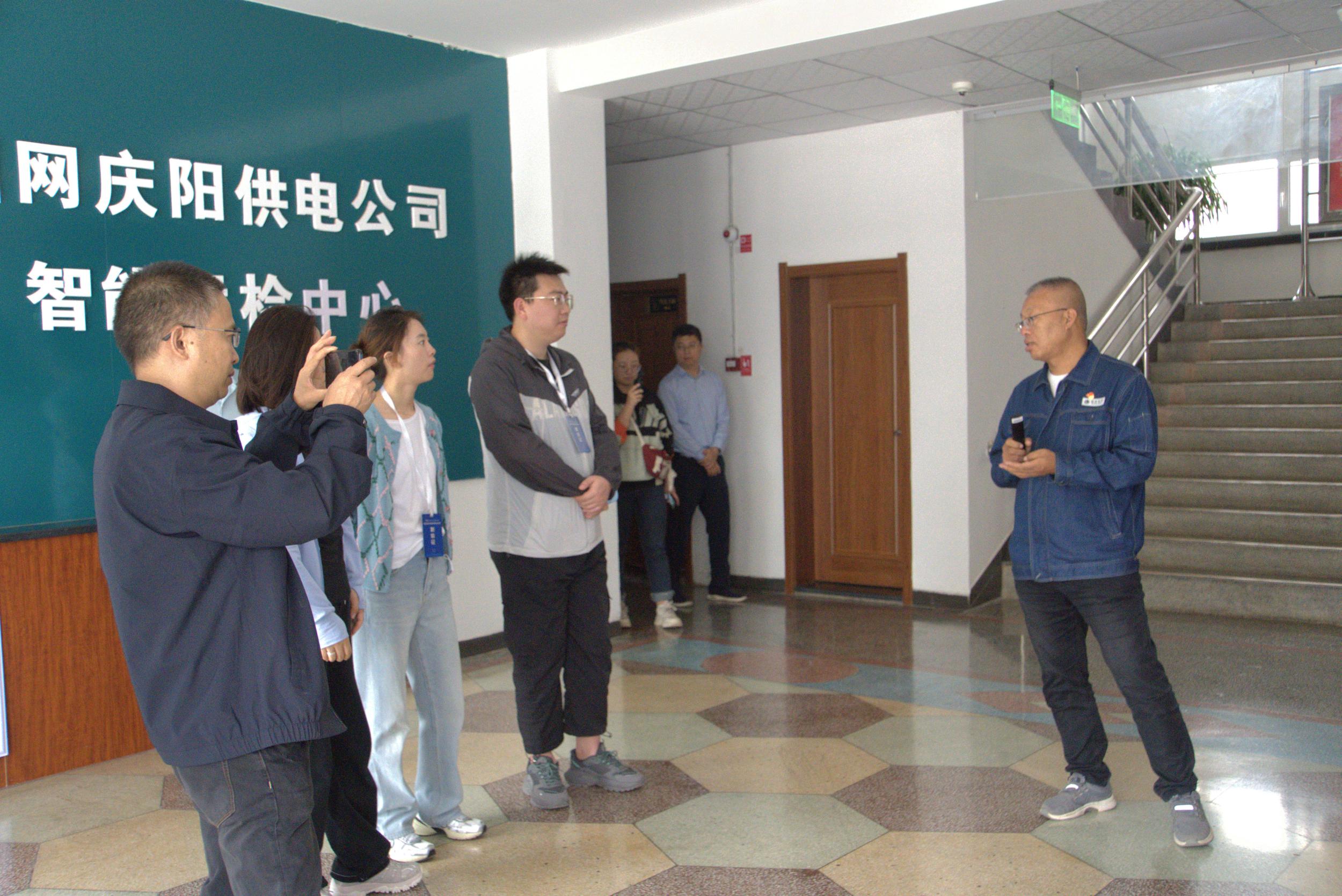 工作人員為采訪團(tuán)介紹國(guó)網(wǎng)慶陽供電公司智能運(yùn)檢中心概況
