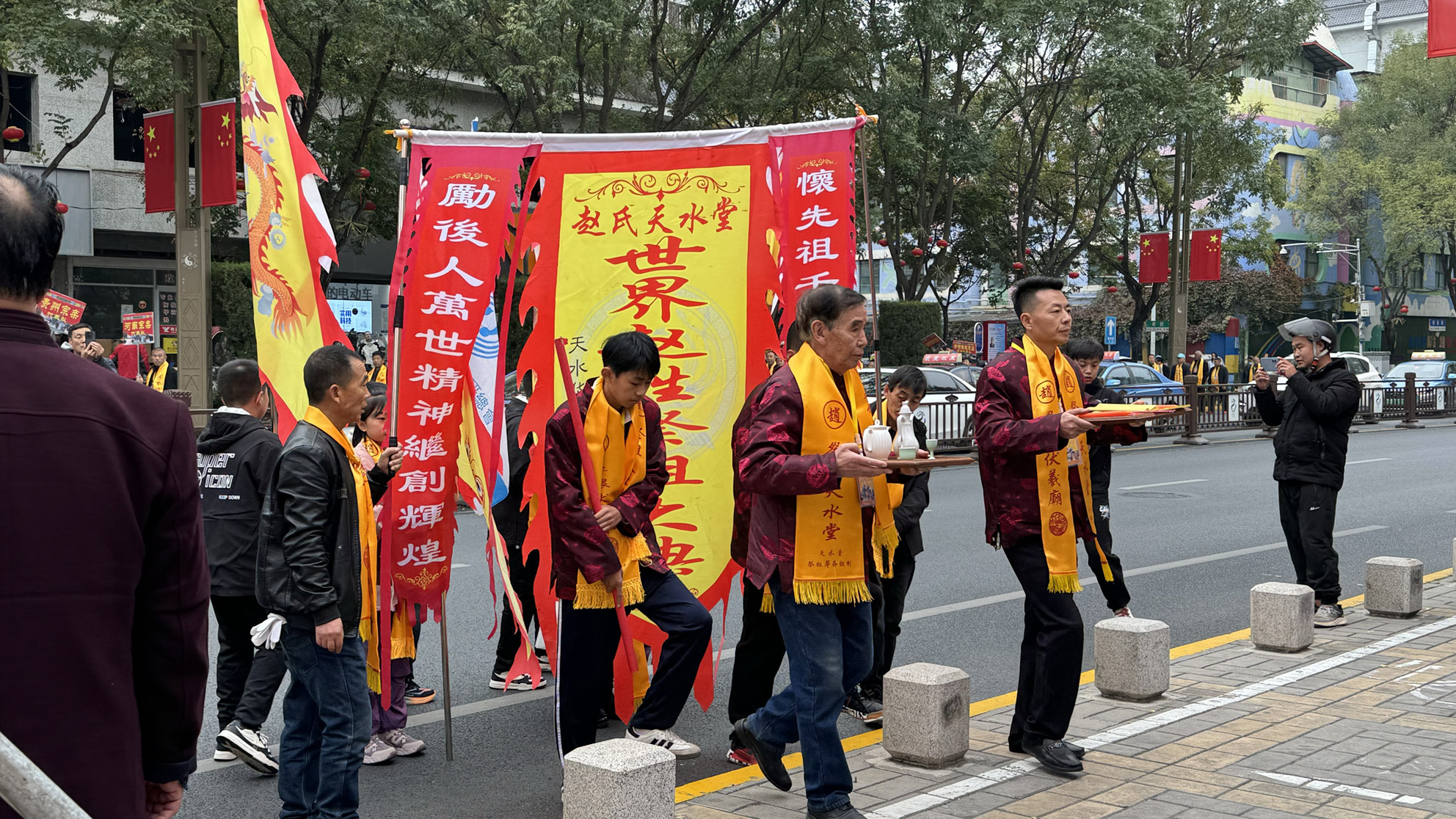 從貴州遠(yuǎn)赴千里前來參加典禮的趙先生說:“我們是來自貴州的趙氏宗親代表隊,每年都來,樹高千尺不忘根,所以天水的祭祖大典我們每年都會參加。”