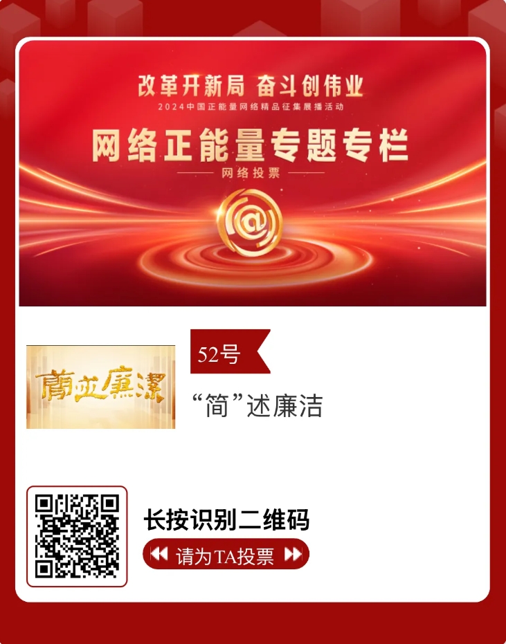 經(jīng)過(guò)初選,省紀(jì)委監(jiān)委專(zhuān)題專(zhuān)欄“'簡(jiǎn)'述廉潔”脫穎而出,進(jìn)入終選。在此,誠(chéng)邀每個(gè)充滿(mǎn)正能量的你,為優(yōu)秀作品投票點(diǎn)贊,為甘肅正能量發(fā)聲。
