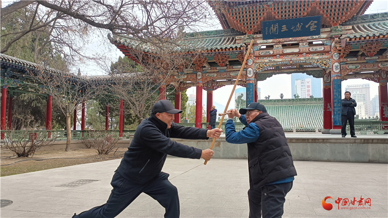 “鞭桿自古就有,甘肅天水、隴南、定西一帶也有習(xí)武者,我父親總結(jié)了蘭州纏海纏桿體系,為鞭桿百花園再添新力量。”王建國介紹蘭州纏海鞭桿體系。