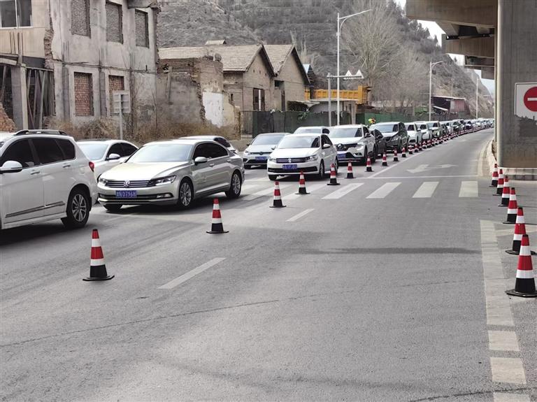 3月22日上午8時(shí),通往大砂坪公墓區(qū)、甘肅臥龍崗人文紀(jì)念園的佛慈大街上車流量明顯增多,雖然車輛行駛速度緩慢,但整體秩序良好。在大砂坪橋公交站處準(zhǔn)備乘坐清明節(jié)掃墓臨時(shí)專線公交車前往公墓祭掃的市民排起了長隊(duì)。墓園附近,等待進(jìn)入的車輛也排起了長隊(duì),蘭州市交警支隊(duì)河北大隊(duì)交警引導(dǎo)祭掃車輛安全進(jìn)出墓園停車場,保障路面交通暢通。