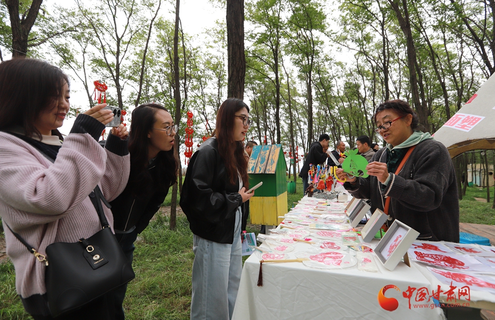 活動現(xiàn)場還設(shè)置了非遺展示區(qū)與美食品鑒區(qū),天津剪布、面塑與崆峒剪紙、泥塑等交相輝映,羊肉泡饃、釀皮、油馓子等鄉(xiāng)土美食香氣四溢,讓現(xiàn)場觀眾愛不釋手。