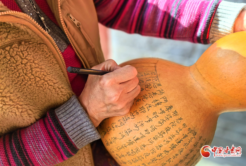 深秋的午后,陳兵手持刻刀,在小小的葫蘆上精雕細(xì)琢,仿佛在與時(shí)光對話,將一個(gè)個(gè)美好的愿景都鐫刻其中。