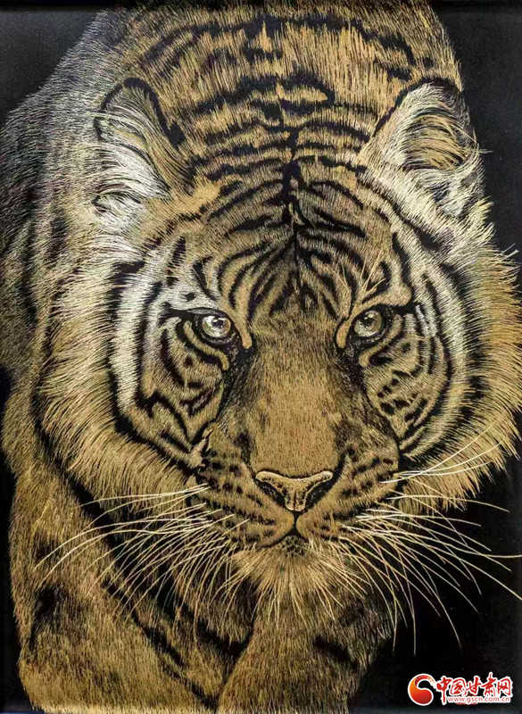 談起自己堅(jiān)守多年的手藝,張兆武曾這樣向大家解釋:“很多人好奇‘鍥金畫(huà)’到底是怎么做的,其實(shí)核心就是‘以刀為筆’。我們用特制的鋼刀,在處理好的底板上一點(diǎn)一點(diǎn)刻,要經(jīng)過(guò)‘繪、鍥、爍、凝’四步,才能把金屬的亮澤和線條的勁兒揉到一起。”這門手藝的根能追溯到青銅器時(shí)期,過(guò)去常用在佛教法器、宮廷裝飾上,和敦煌石窟藝術(shù)的輝煌年代一路相伴,藏著“尊貴”與“長(zhǎng)久”的意涵。