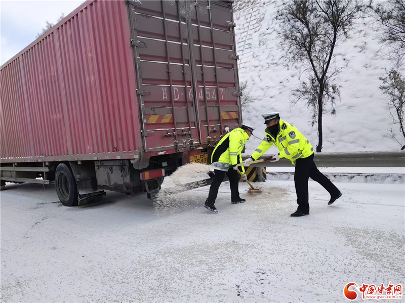為應(yīng)對降雪影響,蘭州公安交管部門科學(xué)調(diào)配警力,在城區(qū)主次干道、國省道沿線及重點積雪結(jié)冰路段布設(shè)執(zhí)勤點位。針對解放門立交橋等橋梁隧道、長大下坡關(guān)鍵點位,提前預(yù)置融雪劑,聯(lián)合市政養(yǎng)護部門開展“機械除雪+人工清掃”作業(yè),確保重點路段“見底露面”。