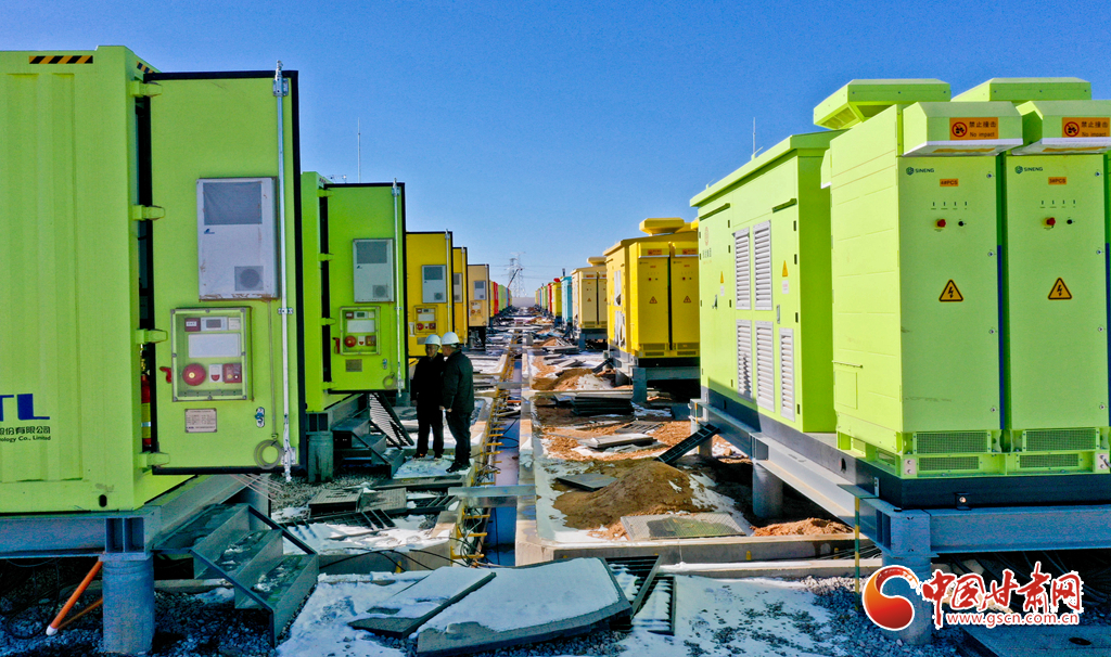 近日,在張掖市臨澤縣300MW/1200MWh獨(dú)立儲(chǔ)能電站建設(shè)現(xiàn)場(chǎng),工程建設(shè)者們冒著嚴(yán)寒進(jìn)行電器調(diào)試、儲(chǔ)能倉(cāng)檢查、輸電線路架設(shè)等投產(chǎn)運(yùn)行前的準(zhǔn)備工作,確保即將投產(chǎn)運(yùn)行。