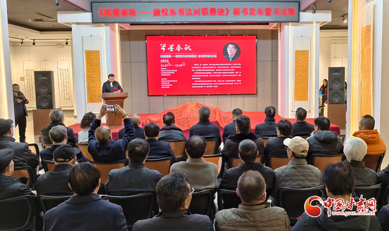 中國甘肅網(wǎng)12月7日訊(西北角·中國甘肅網(wǎng)記者 任磊)12月7日上午,《筆墨春秋—顏悅東書法對聯(lián)墨跡》新書發(fā)布暨書法展在甘肅省藝術(shù)館啟幕。本次展覽集中呈現(xiàn)顏悅東近年來創(chuàng)作的120幅書法作品,同期發(fā)布的新書收錄楹聯(lián)作品330副,系統(tǒng)呈現(xiàn)了作者在書法領(lǐng)域的藝術(shù)探索與創(chuàng)作成果。