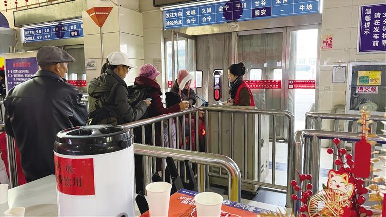 清晨六點(diǎn)的蘭州客運(yùn)中心,一抹抹“志愿紅”已在晨曦中閃動(dòng)。“大爺,行李我?guī)湍嗌宪嚕c(diǎn)”“阿姨,母嬰室往這邊走,里面有專用休息區(qū)和消毒柜”……親切的引導(dǎo)、主動(dòng)的幫扶,讓匆忙的歸途多了幾分從容。務(wù)工返鄉(xiāng)的老李接過志愿者遞上的“福”字窗花,笑容舒展:“每年這時(shí)候,一到車站就碰上熱心人,心里踏實(shí),像提早到了家。”