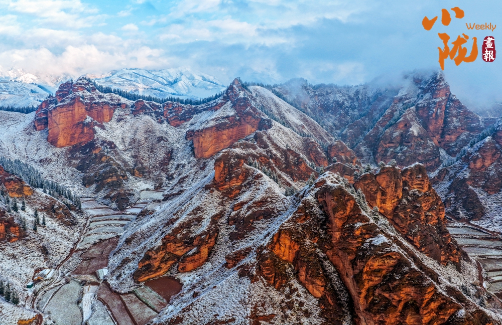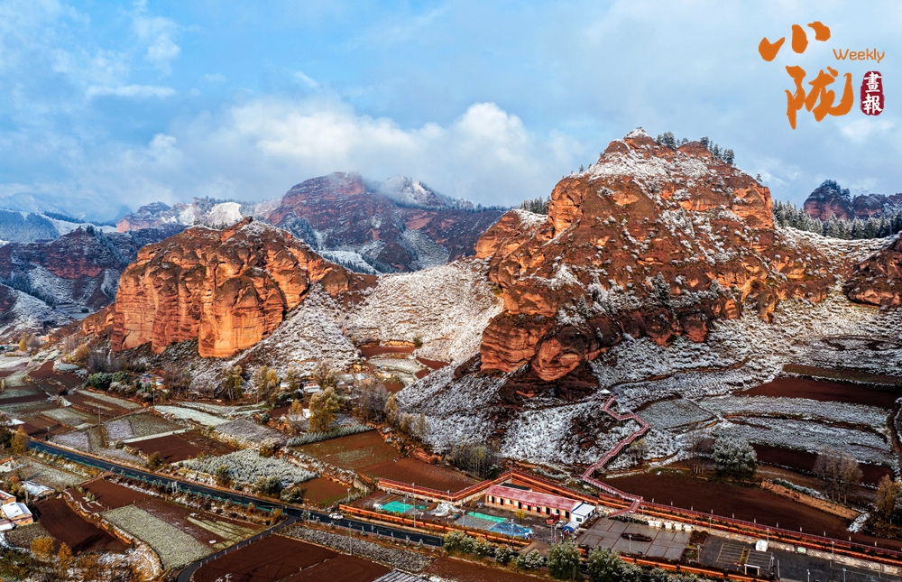 丹霞的漫山赤紅與覆雪的凈白相互襯托,積雪沿巖層紋理自然鋪展,勾畫出地貌歷經(jīng)風(fēng)霜的歲月痕跡;融雪處,一片片紅色巖體漸次顯露,猶如大地在雪被之下,悄然翻開一部古老而熾熱的地質(zhì)史冊。