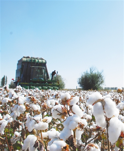 機(jī)械化采棉一景。呂大剛 攝