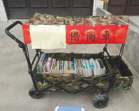 早上9點左右,自助借閱車從外婆家推出門,天黑了再推回來??吹较胱x的書,讀者自行登記書名和個人信息,留下聯(lián)系方式,就能把書借回家。