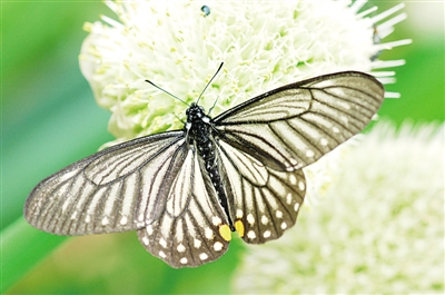 我最先注意到的,是一只半透明的黑色蝴蝶,看上去很像斑蝶,又總覺(jué)得有什么地方不對(duì)。后來(lái)知道了,它就是小黑斑鳳蝶。它擬態(tài)有毒的斑蝶,能讓部分天敵避而遠(yuǎn)之。如果這是一個(gè)設(shè)計(jì)或安排的話,那可真是巧妙。