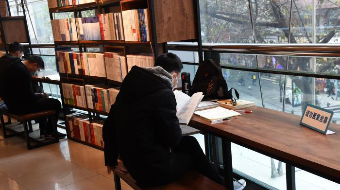 資料圖:圖為重慶書城恢復(fù)營(yíng)業(yè),市民戴著口罩閱讀。 周毅 攝