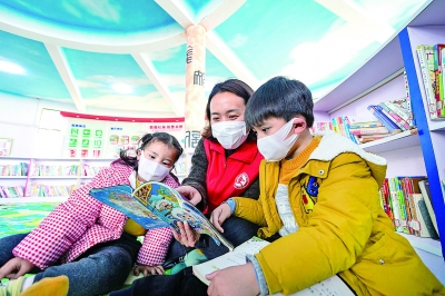 江蘇省海安高新區(qū)文化志愿者在農家書屋里與留守兒童一起閱讀兒童讀物。翟慧勇攝/光明圖片