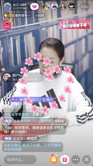 倪萍覺得,經(jīng)過幾次直播,在觀眾的心目當中,實體書店也許會有了一層光芒。她在接受記者采訪時說,而這種光芒,提示人們?nèi)嶓w書店買書,讓孩子們也喜歡實體書店,意義可能比“帶店”更有力量。