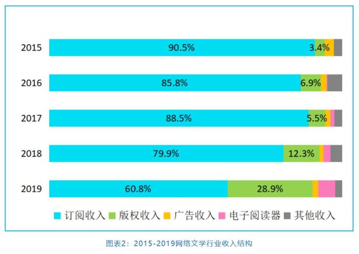 相較于往年,網(wǎng)絡文學行業(yè)的收入結構則出現(xiàn)變化。